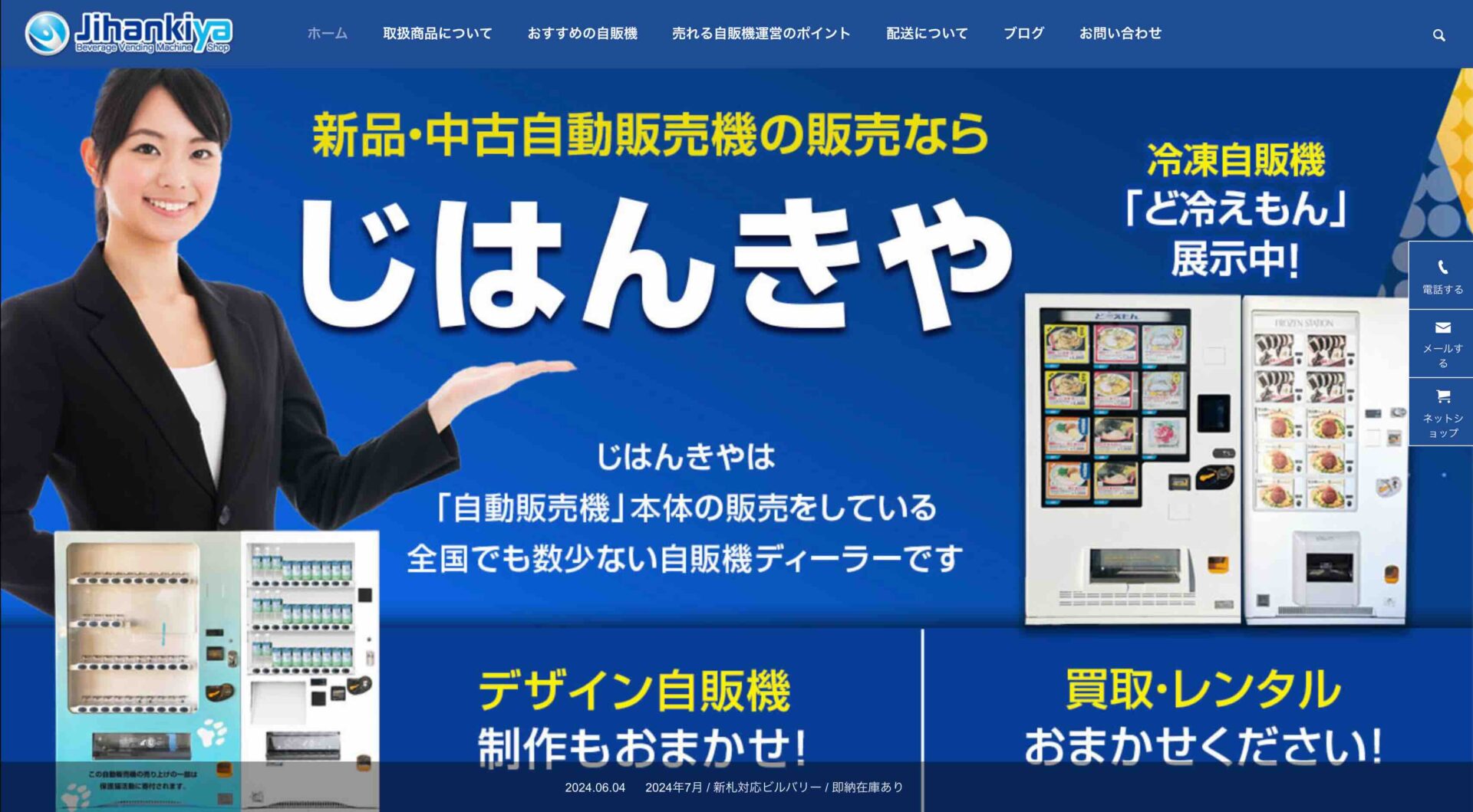 じはんきや(株式会社朝日ビバレッジ) 引用元:https://jihanki.co.jp/ | 新品販売、中古販売、リース | 《新品》 102万3,000円(税込)〜 《中古》 22万円(税込)〜 | 導入/設置/部品供給/修理/メンテナンス/移設/買取設置後の運営アドバイス など | 10年以上の実績を持つ「戦略的看板屋」とタッグ | 愛知県一宮市 常時100台以上を展示 ※完全予約制 |