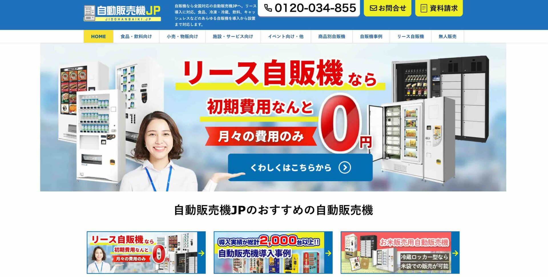 自動販売機JP(株式会社パルサー) 引用元:https://jidohanbaiki.jp/ | 新品販売、レンタル、リース | 要問い合わせ | 導入/設置 | お手軽なシートラッピングタイプも用意 | 宮城県仙台市・東京都の2か所 ※事前予約制 |